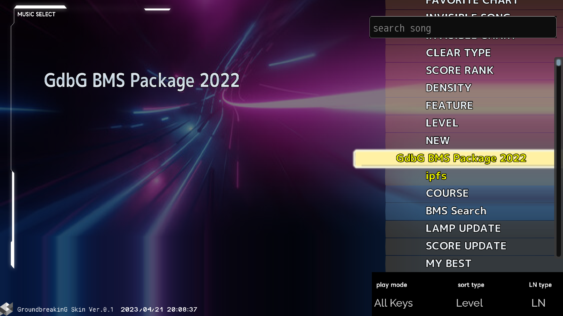 - BMSを「Z」キーで選択するとプレイが可能です。